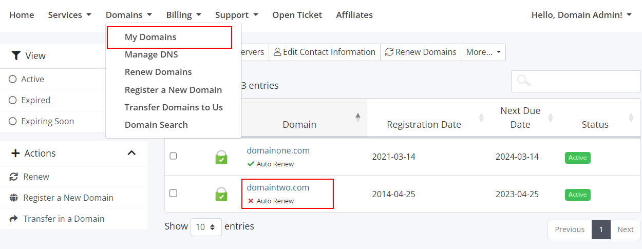 To change the DNS name server for a specific domain you will need to follow the below steps.